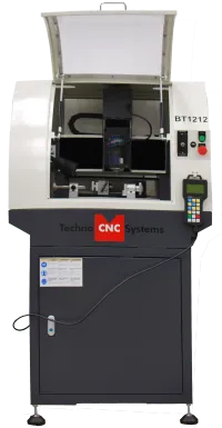 The BT1212 Benchtop CNC Router is the best table top CNC machine; it is small, compact, and includes a 1 HP router, full safety enclosure, aluminum t-slot table and is driven by brushless stepper motors and drives. The controller is Techno’s ever-so-popular and easy-to-use hand-held controller. The BT 1212 is ideal for small part production, prototyping, model making, engraving, woodworking, signage and educational applications. The BT1212 is compatible with industry standard G and M codes. The Techno BT1212 is a sturdy machine for precision routing. Its compact size allows it to fit almost anywhere.