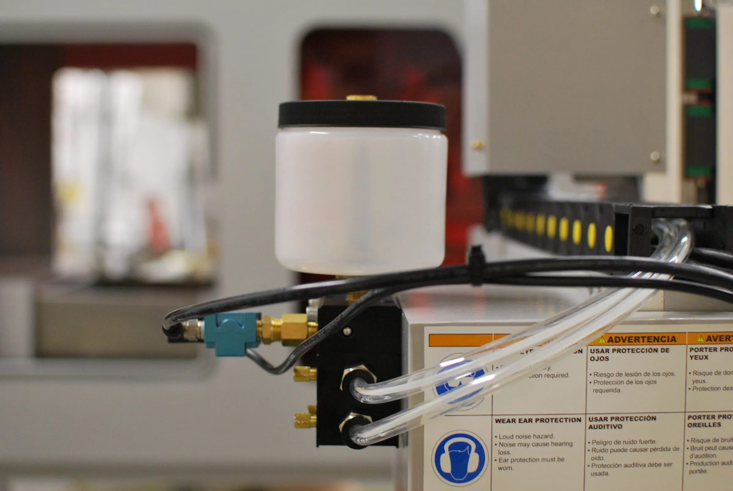COOLANT SYSTEM The micro-drop coolant system is ideal for use with the Techno machines. The units micro dispenser delivers a very small amount of high performance vegetable based lubricant to the cutting tool by atomizing the lubricant in a high velocity air stream. The result is higher material removal rates, improved finish, tighter tolerances, and increased productivity.