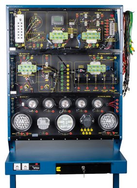 The ConsuLab CL-MP-1918 is a double-sided trainer has been developed to teach modern automotive lighting systems on one side and CAN Bus multiplex lighting systems on the other through student led learning exercises where students develop their understanding of the system through the physical wiring all circuits. The product is used for teaching Ohm’s law, basic circuits, advanced circuits, relay controlled, power side and ground side-controlled circuits, the J-1939 protocol with digital and analog inputs/outputs, and there is an included fault box on each side with 12 real world faults on each side that include open circuits, short circuits, high resistance circuits that will require voltage drop testing to verify, ground faulted circuits and more.