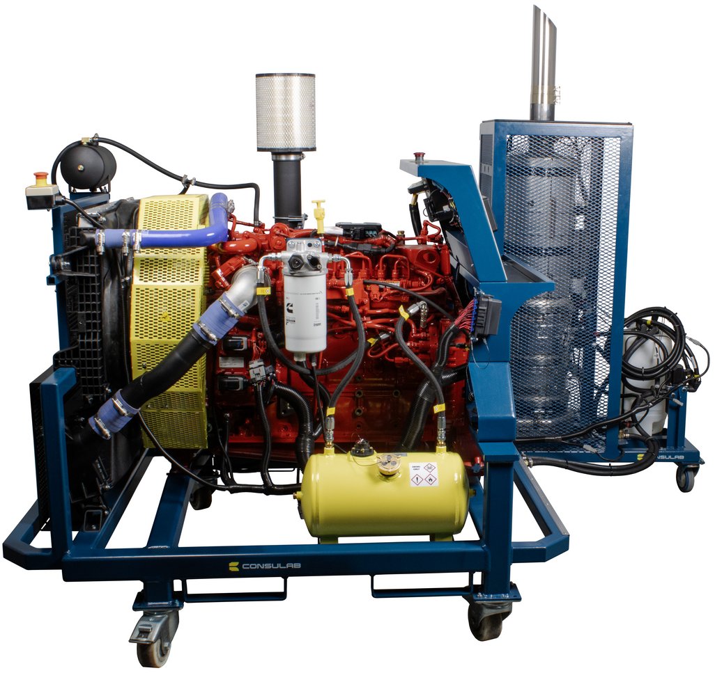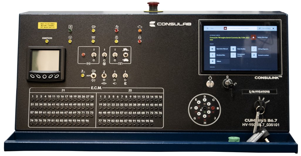 The Diesel Engine Performance Training System (Cummins B6.7, EPA 2017) (HV-950-B6.7) is the first heavy vehicle diesel engine bench to feature the innovative ConsuLink™ touchscreen student learning platform. This brand-new, fully operational Cummins B6.7 diesel engine trainer delivers cutting-edge EPA 2021 emissions technology with advanced injection, high-power density and complete aftertreatment systems in a safe, accessible classroom format. Students perform autonomous diagnostics using the intuitive touchscreen that automatically sets scenarios with customer complaints and step-by-step instructions, while the engine responds with authentic real-world symptoms, OEM DTCs and check engine light illumination exactly as found on today’s trucks.