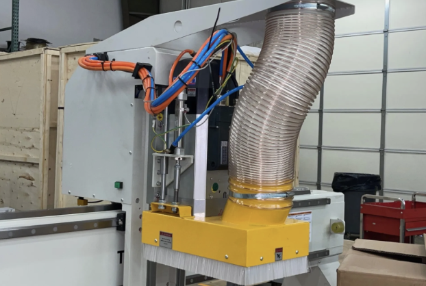 Vacuum Shroud Pneumatically operated hood with concentrated airflow at the spindle for efficient dust and debris cleanup during routing.