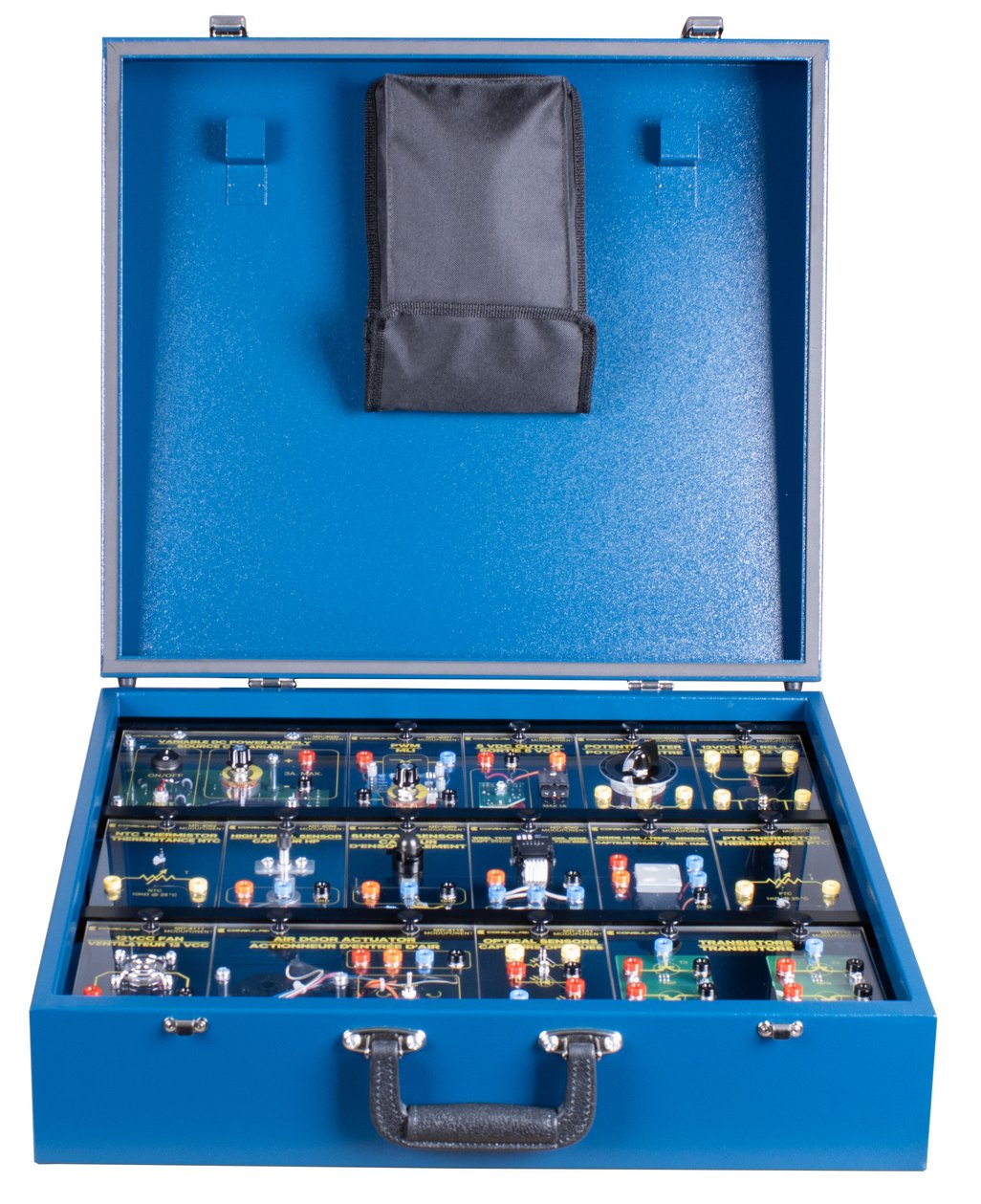 - Self-contained unit has a protected built-in adjustable power supply and holds up to 16 different Moduponents®