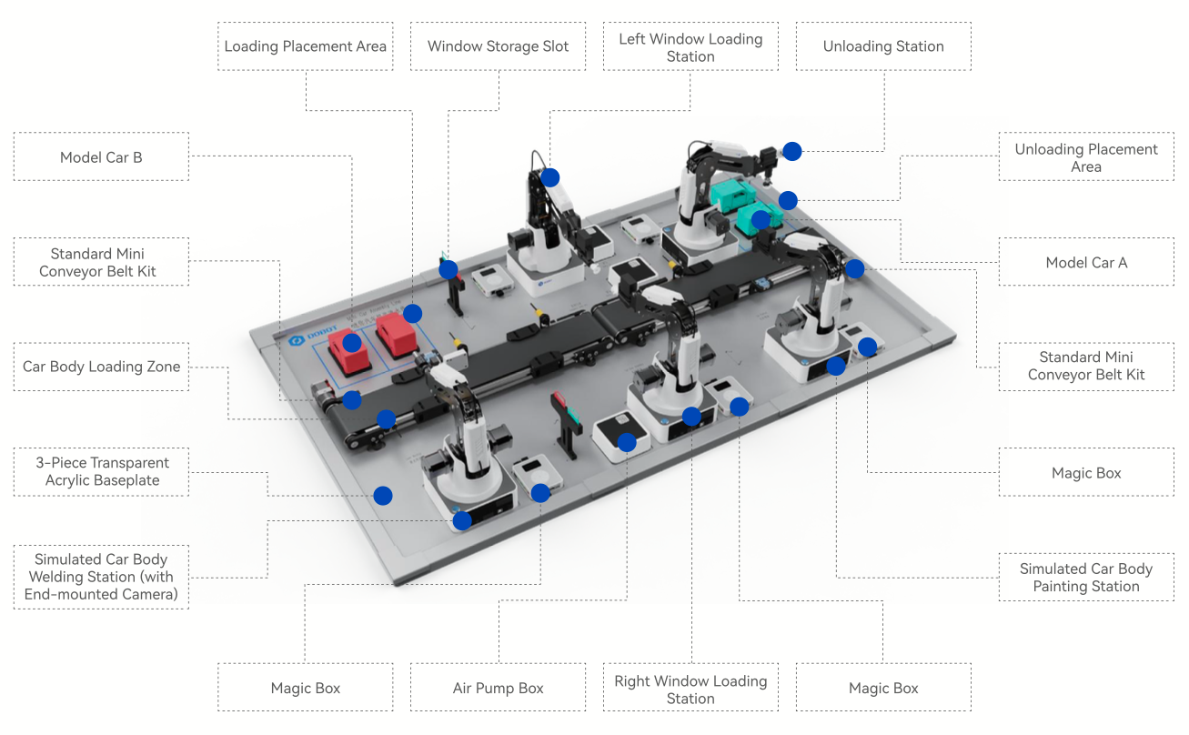 By replicating the automotive production process, students gain in-depth understanding of the core concepts of smart manufacturing and automation technology.
