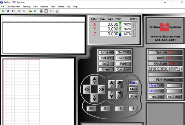 Controller The WinCNC interface is a controller system with step jog for fine incremental control, start, stop and pause buttons, single button for safety clearance position, absolute and relative coordinates control, and more.