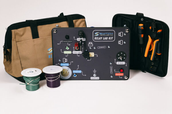 This hands-on learning tool from Switch is designed to teach the functions and wiring of relays, switches, and lights while preparing students to wire up the dash on a Switch EV Kit Car. Includes 5 – 100-foot spools of wire, ferrule connectors, instructions, schematic and testing procedure.