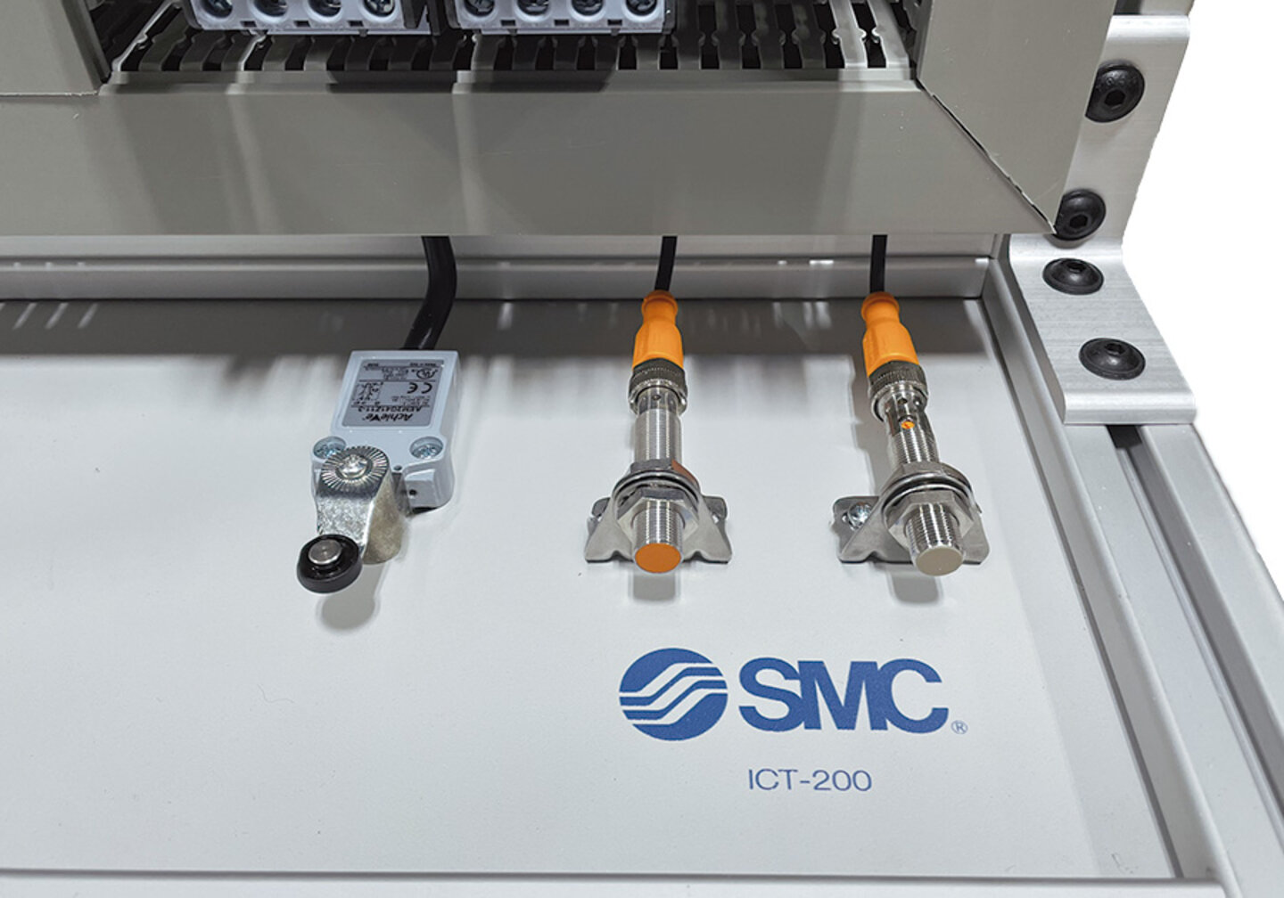 The SMC Industrial Controls Trainer (ICT-200) provides students with a flexible platform allowing for hands-on experiments in wiring and troubleshooting of control circuits. The system gives students access to devices allowing students to connect and wire all circuit components directly via terminal blocks or banana jack plugs.