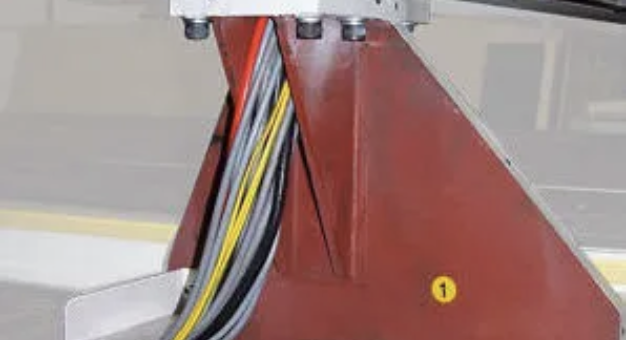 Gantry Uprights The Gantry uprights are cast iron with heavy duty gussets formed into the casting. Each support is machined for housing the various drive assemblies including motors, bearings, belts, and wiring harnesses.