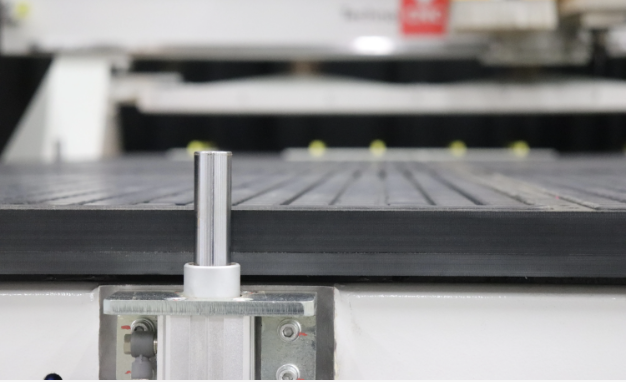 Pop-up Pins The Venture Cabinet Nesting Series Machine comes standard with three pop up pins. These pins allow the operator to bank the edge of the material against them precisely aligning the material to the axes of travel and always having a common origin.