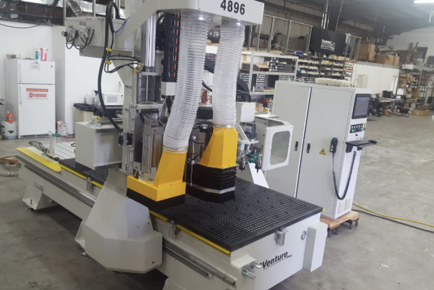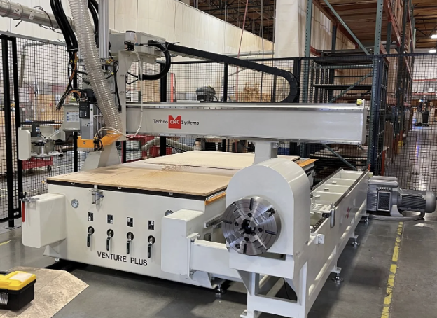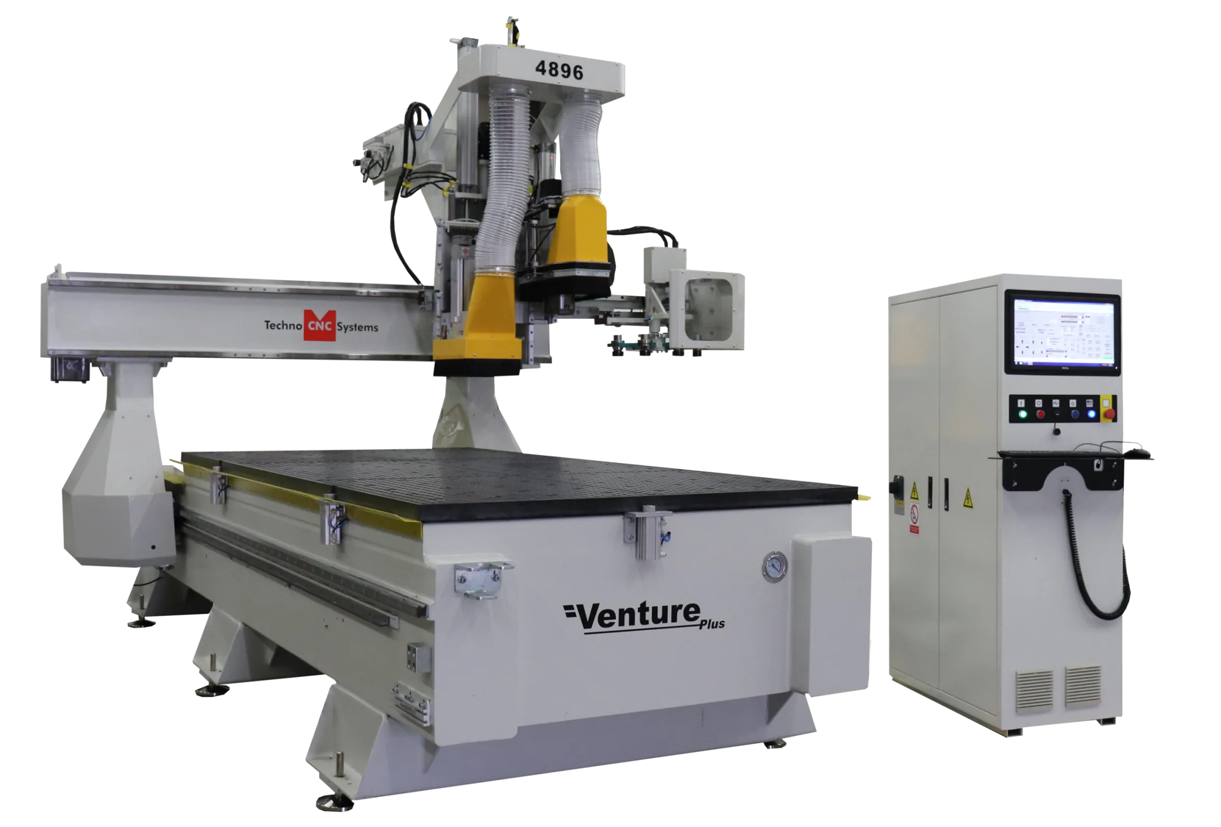 The Venture Plus Series CNC Router is designed for high volume production shops with demanding applications that require high throughputs. Features include all steel construction, precision linear rails and bearings, precision helical rack-n-pinion on the X and Y axes with a ballscrew Z axis drive, PC based Osai industrial CNC controller with easy to use system interface, 12 HP precision HSD Italian spindle and multi-zone vacuum t-slot table. The XY drives include a precision gear box that is directly coupled to the servo motor and pinion. This provides high speed precision motion. All of the electronic components are housed in the Nema double-door cabinet which allows for easy access. The product is manufactured abroad with state-of-the-art engineering techniques allowing Techno CNC Systems to sell this high quality precision machine at a very economical price. This engineered masterpiece is the result of years of experience in the CNC router market and ideal for mid and large volume production shops.