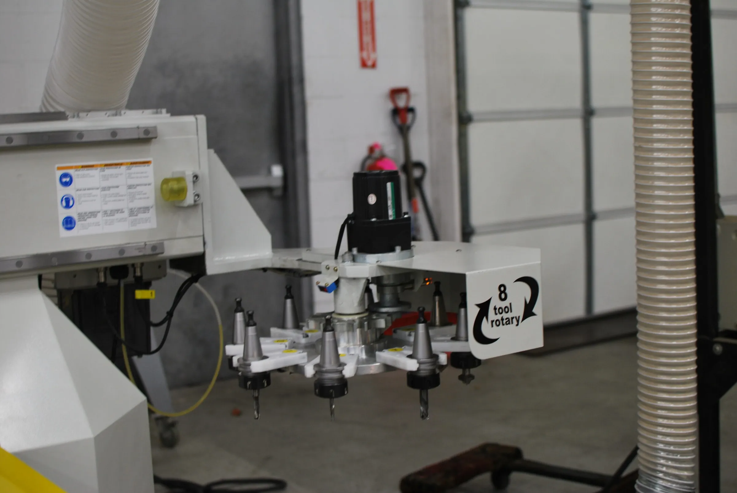 TOOLING The Venture Production work cell includes an 8-position rotary carousel that moves with the machine while the gantry travels. The use of a carousel speeds up tool changes assuring faster cycle times increasing production capability.