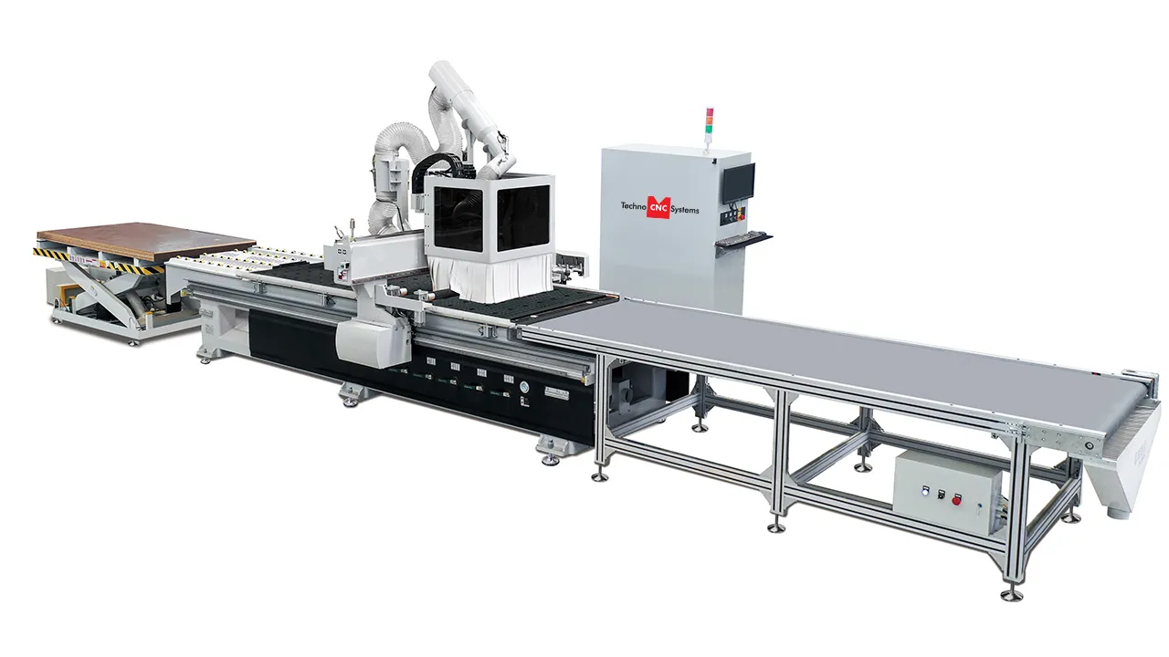The Venture Nesting Production Work Center is designed with the high production cabinet shop in mind. Customers are able to streamline material handling, CNC routing, and offloading operations seamlessly and efficiently. The Techno CNC System is G-Code based and compatible with the most popular cabinet and closet design programs.