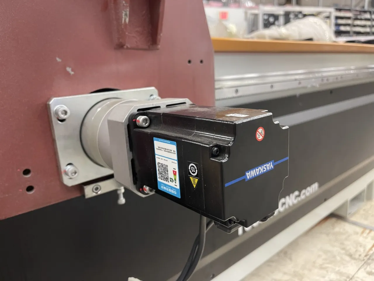 DRIVE TRAIN ASSEMBLY Techno CNC Systems uses new-generation precision helical rack and pinion drives with high dynamic performance and accuracy. These pinion drives deliver ultra smooth motion, power, and speed to the equipment. The helical pinion is directly driven by the digital AC servo motor with ultra-quite performance. The result of this new generation helical drive is superior cut quality, accuracy and machine longevity. This technology allows Techno to build large format machines that deliver speed and accuracy where ball screw driven machines are limited.
