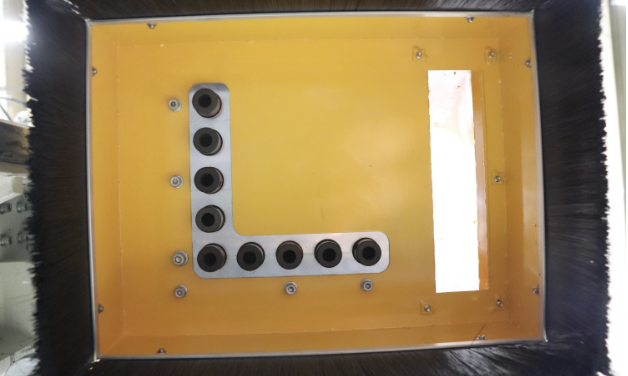 Drill Bank (Optional) The 9-Spindle Drill Bank is an option for the Venture Plus model machine. All nine spindles are on 32mm centers and are fully programmable for individual or gang drilling. The unit is 3HP “L” shaped drill pattern.